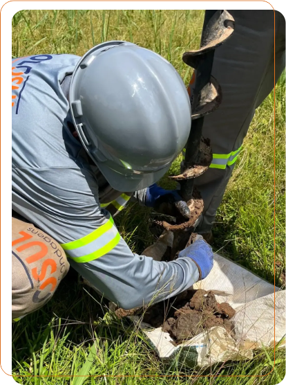 As amostras são retiradas e acondicionadas conforme norma ABNT NBR 9603/2015 – Sondagem a trado – Procedimento que estabelece os requisitos mínimos para sondagem a trado, dentro dos limites impostos pelo equipamento e pelas condições do terreno.